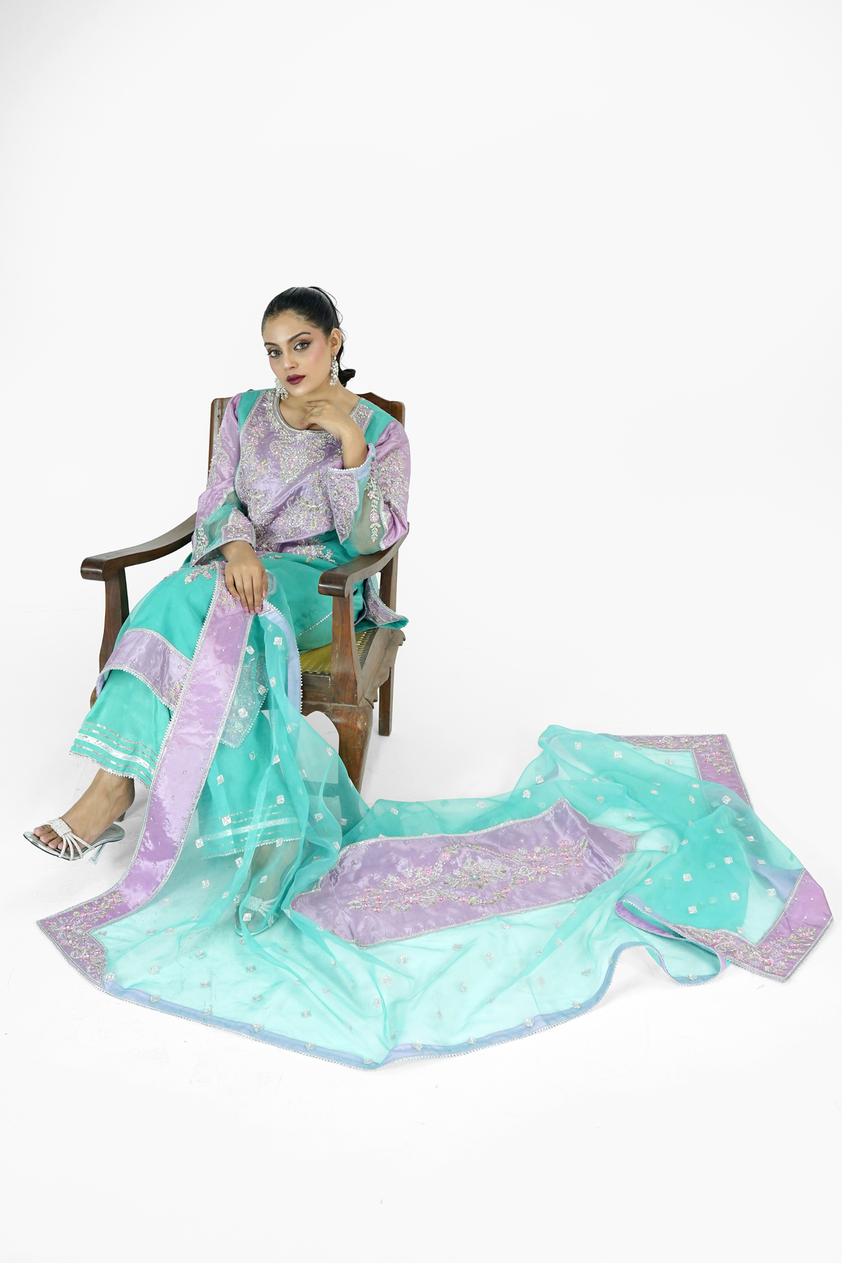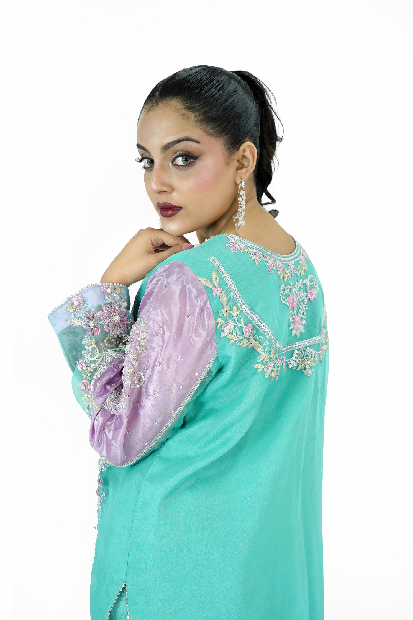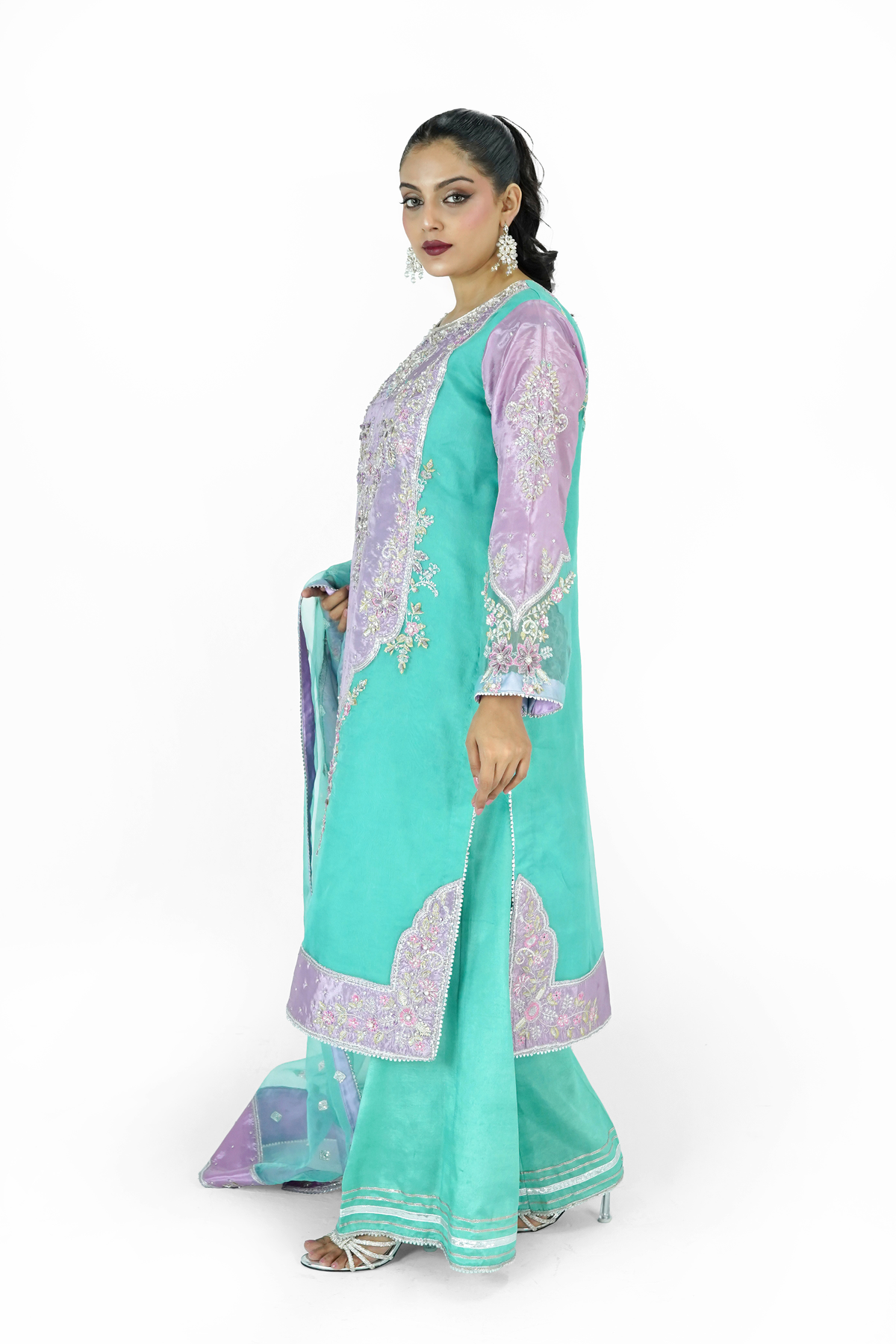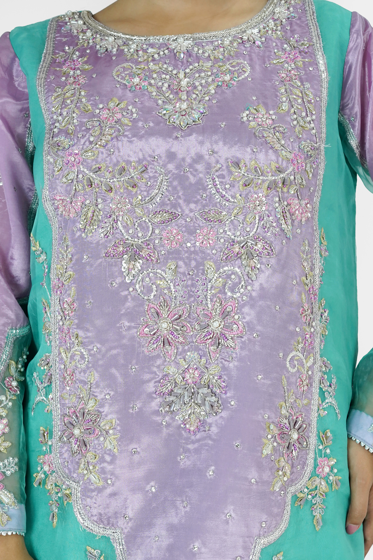 Embroidered Organza With Hand Made Embellishment On Sleeves