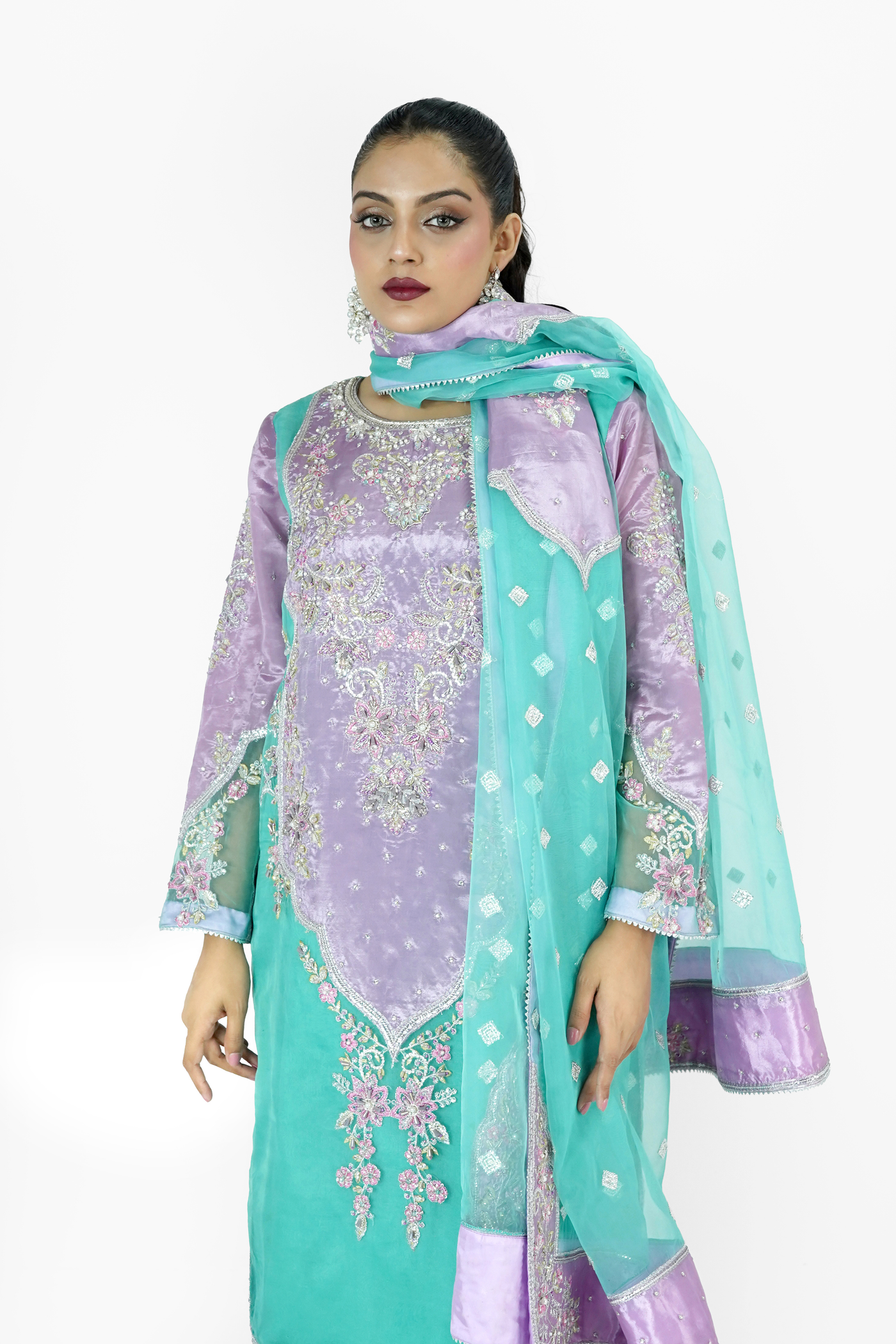 Embroidered Organza With Hand Made Embellishment Work On Front