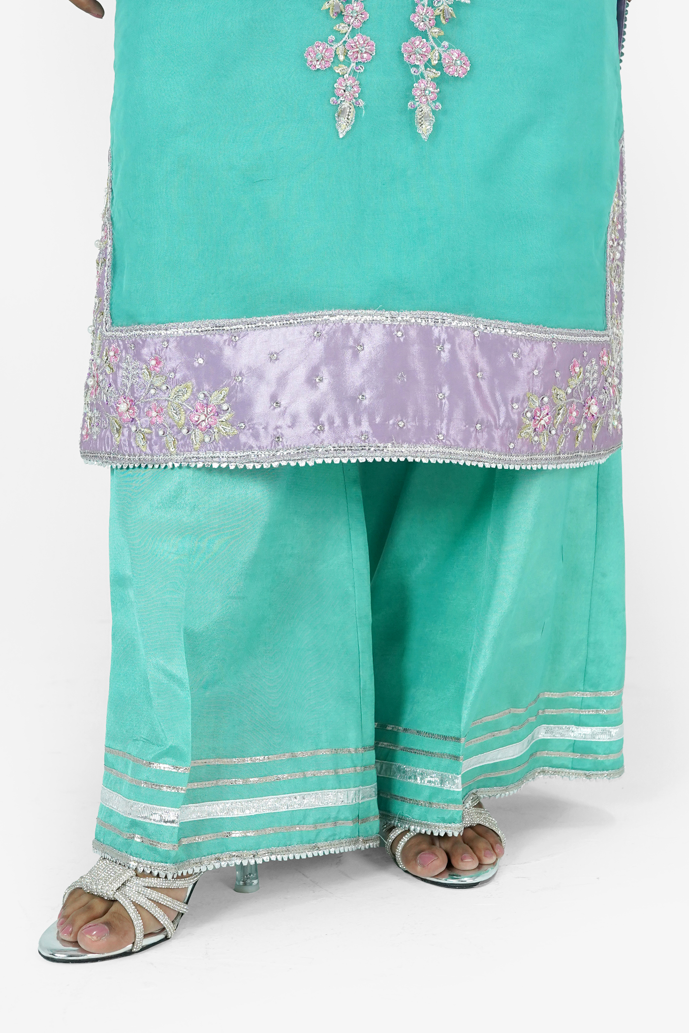 Embroidered Silk With Hand Made Embellishment Work On Neck line